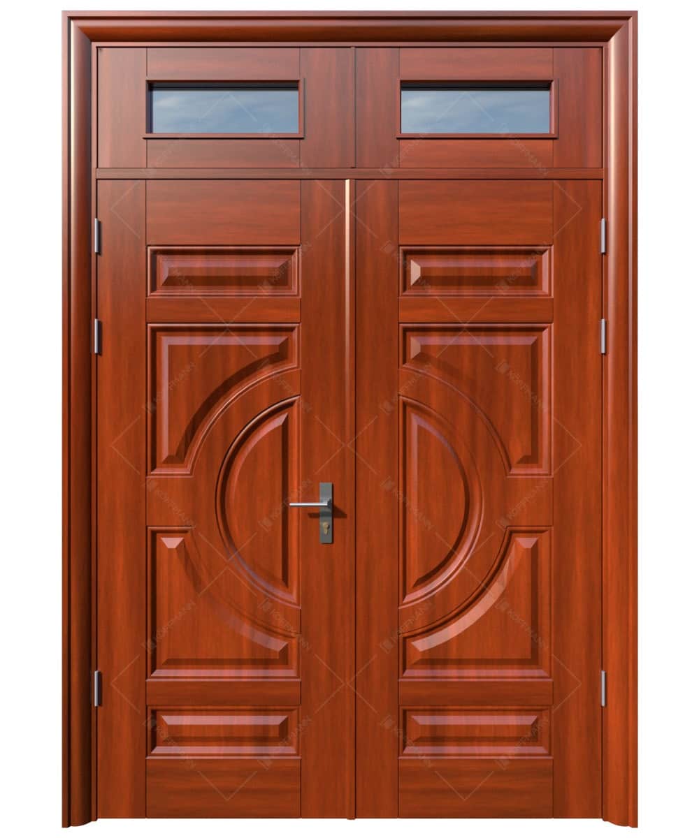 Cửa thép vân gỗ 2 cánh lệch phù hợp cho thiết kế cửa phụ, cửa bên hông nhà và cửa chính căn hộ chung cư.